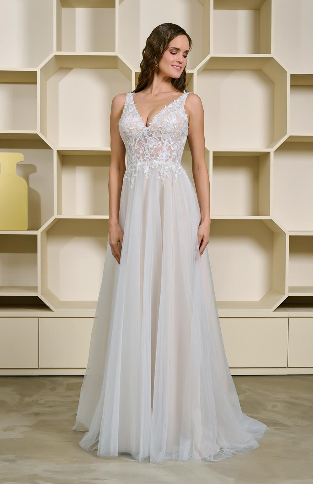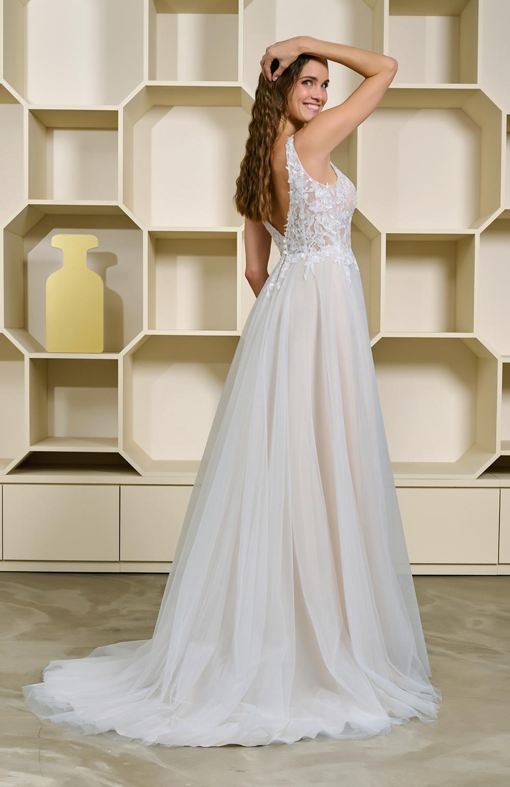 Robe de mariée en tulle et dentelle.