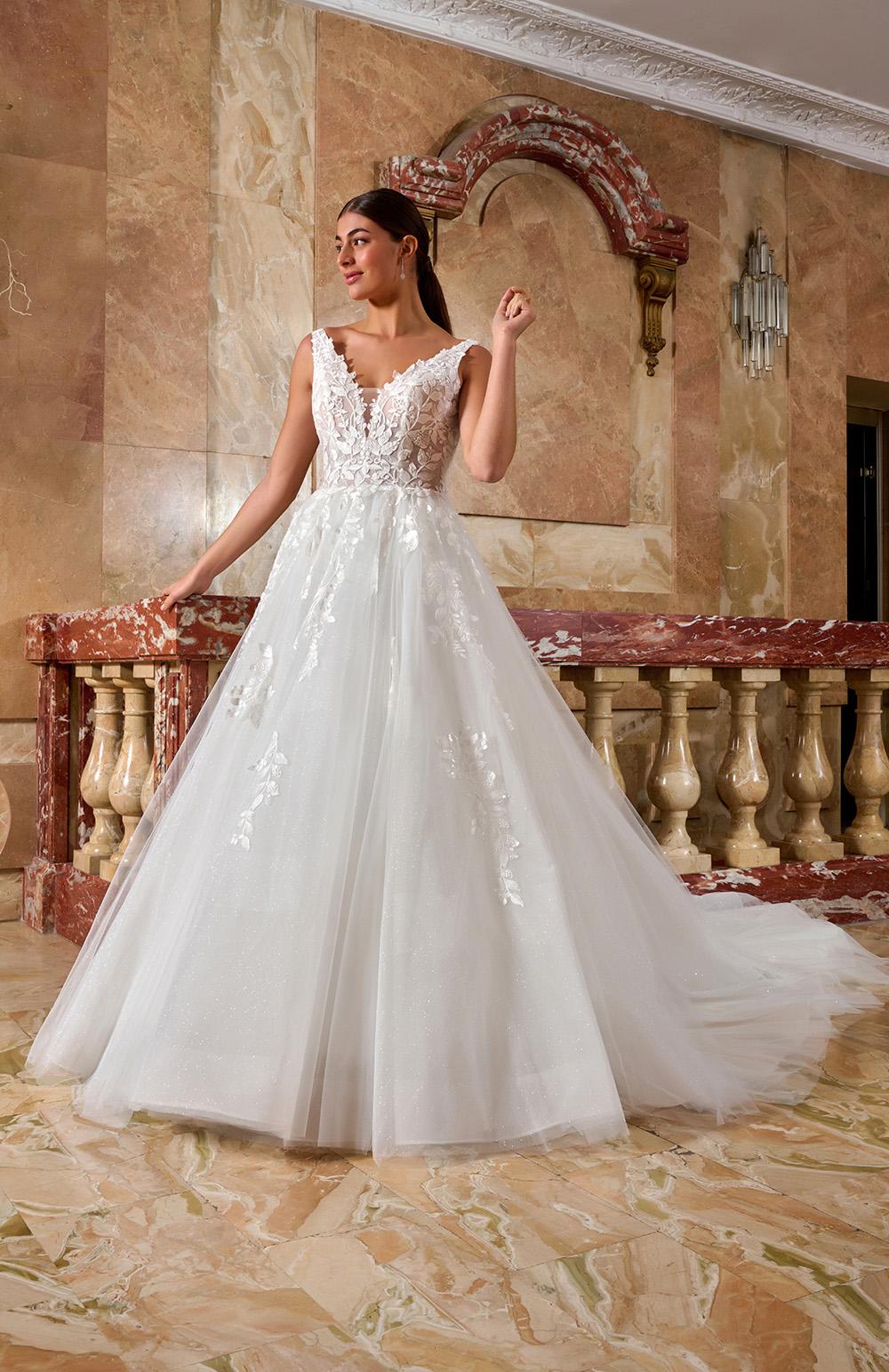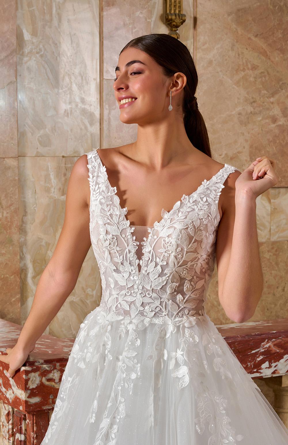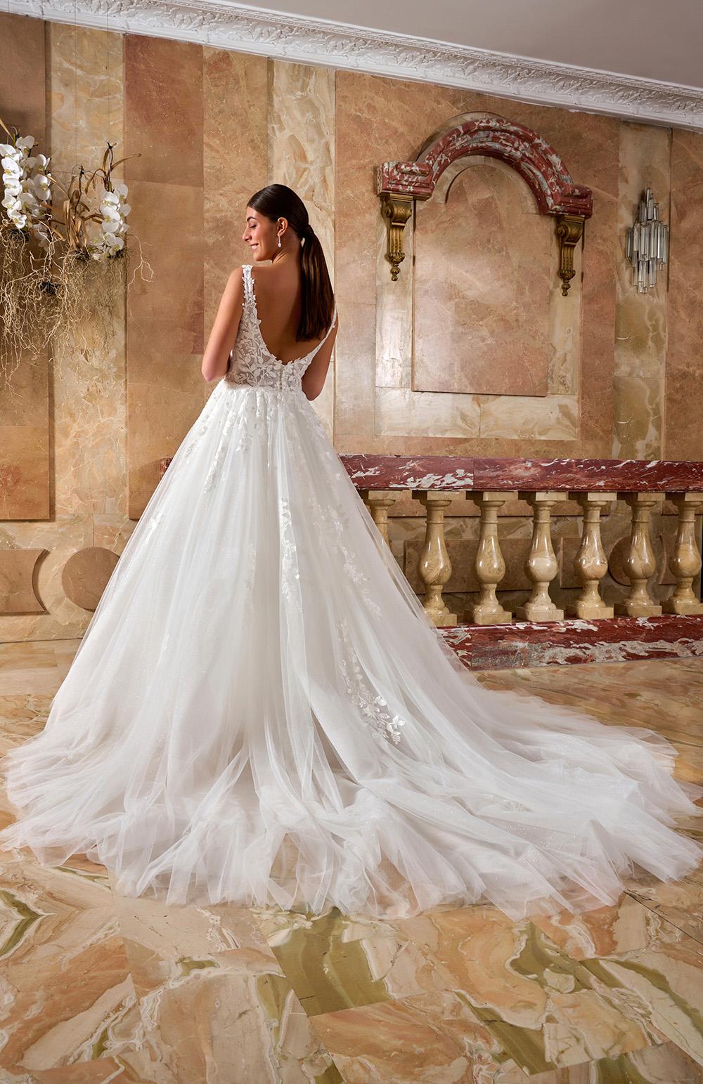 Robe de mariée en tulle et dentelle.