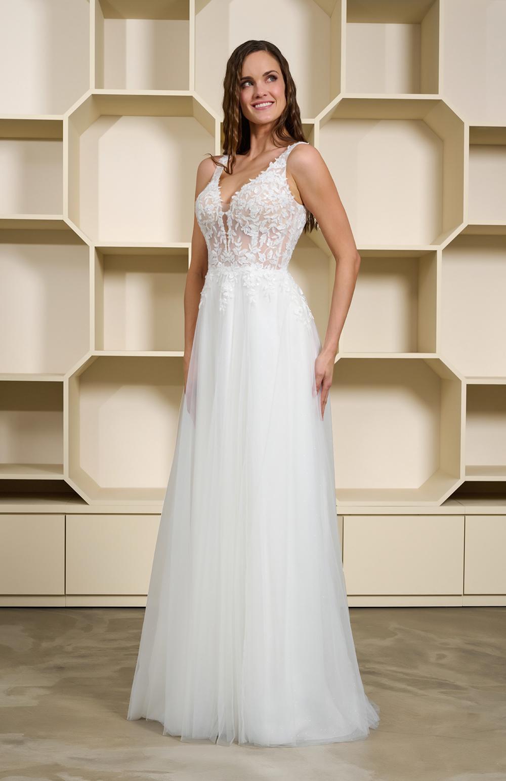 Modèle présenté en ivoire / nude, existe en tout ivoire et en tout blanc.