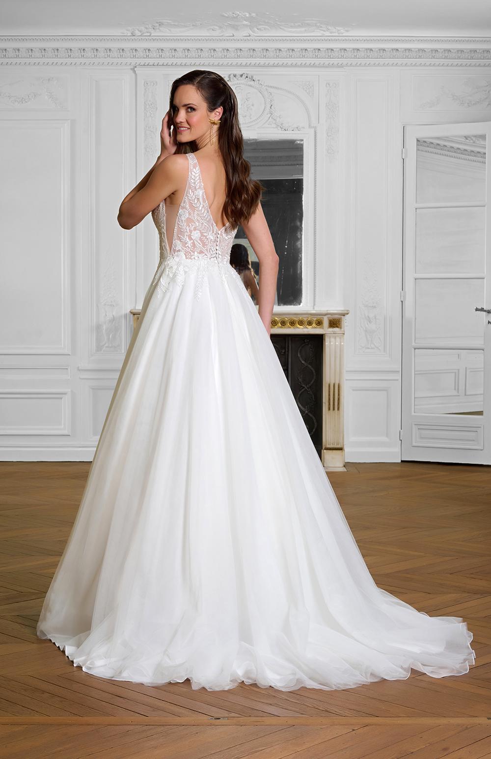 Robe de mariée en tulle et dentelle.