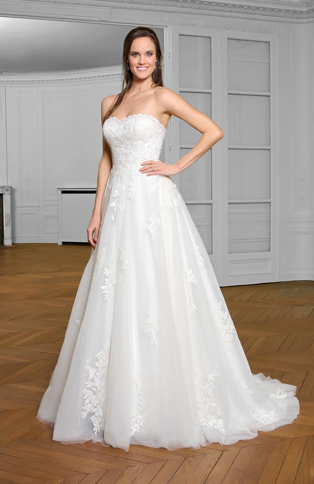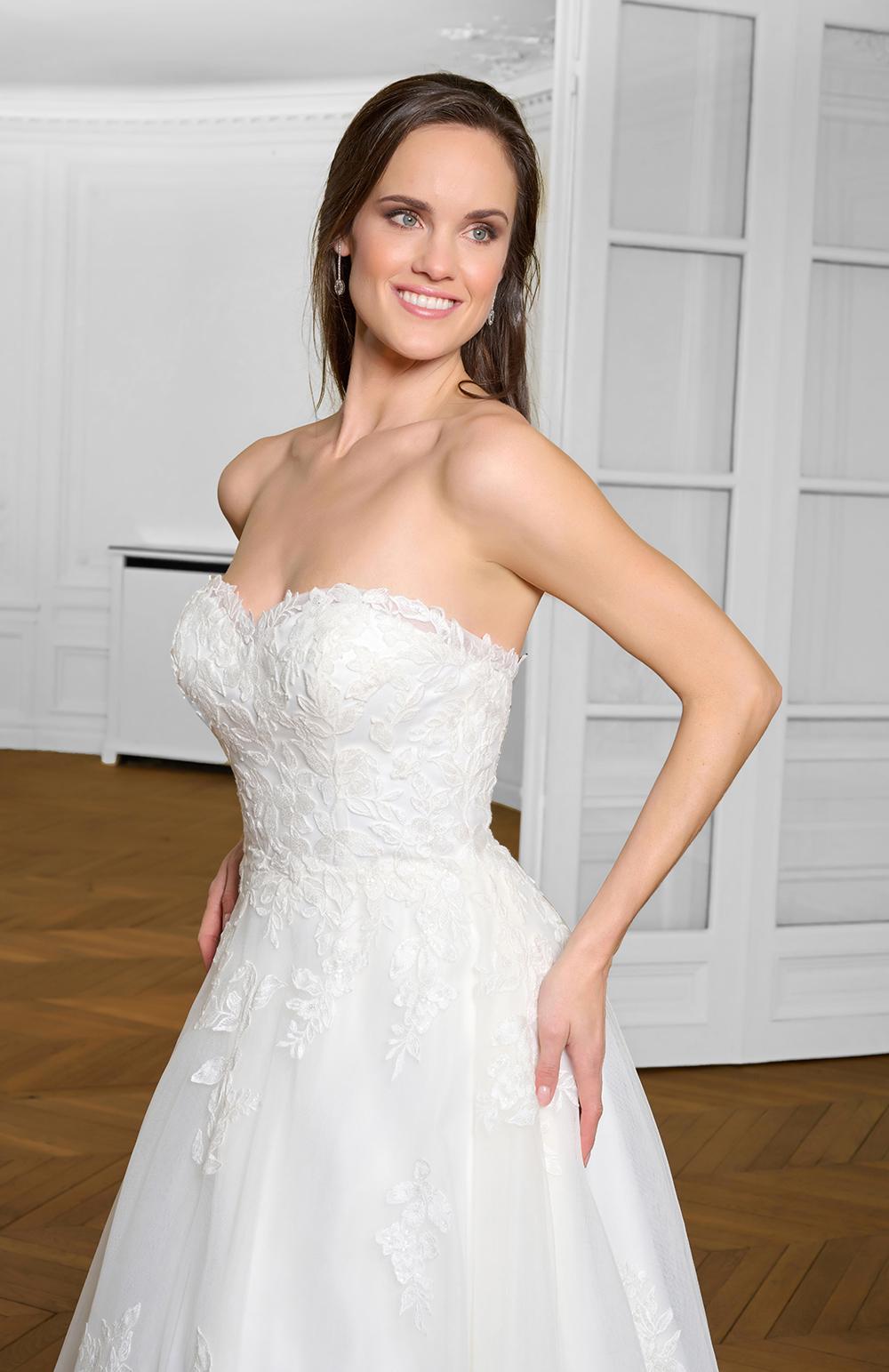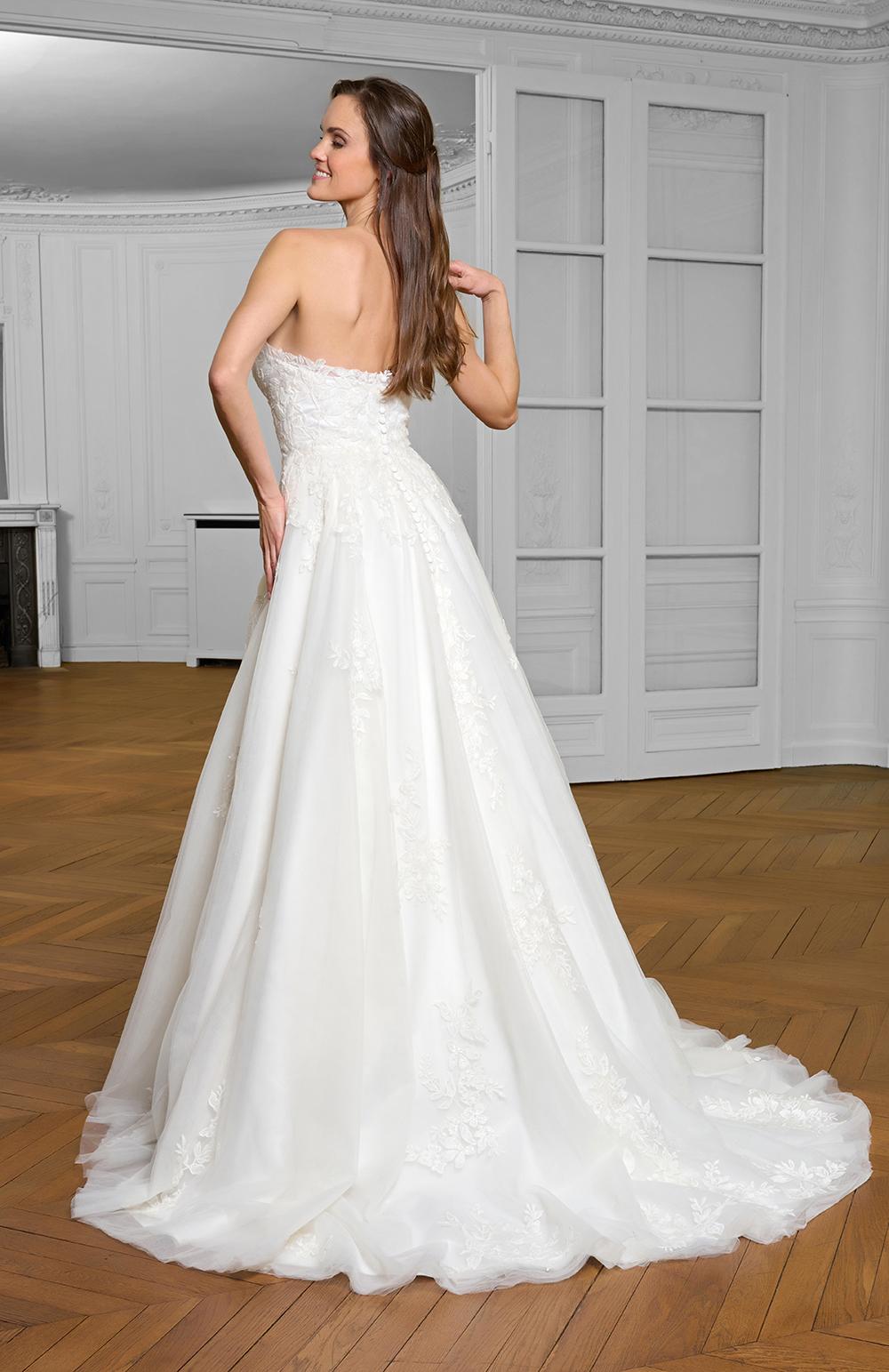 Robe de mariée en tulle et dentelle.