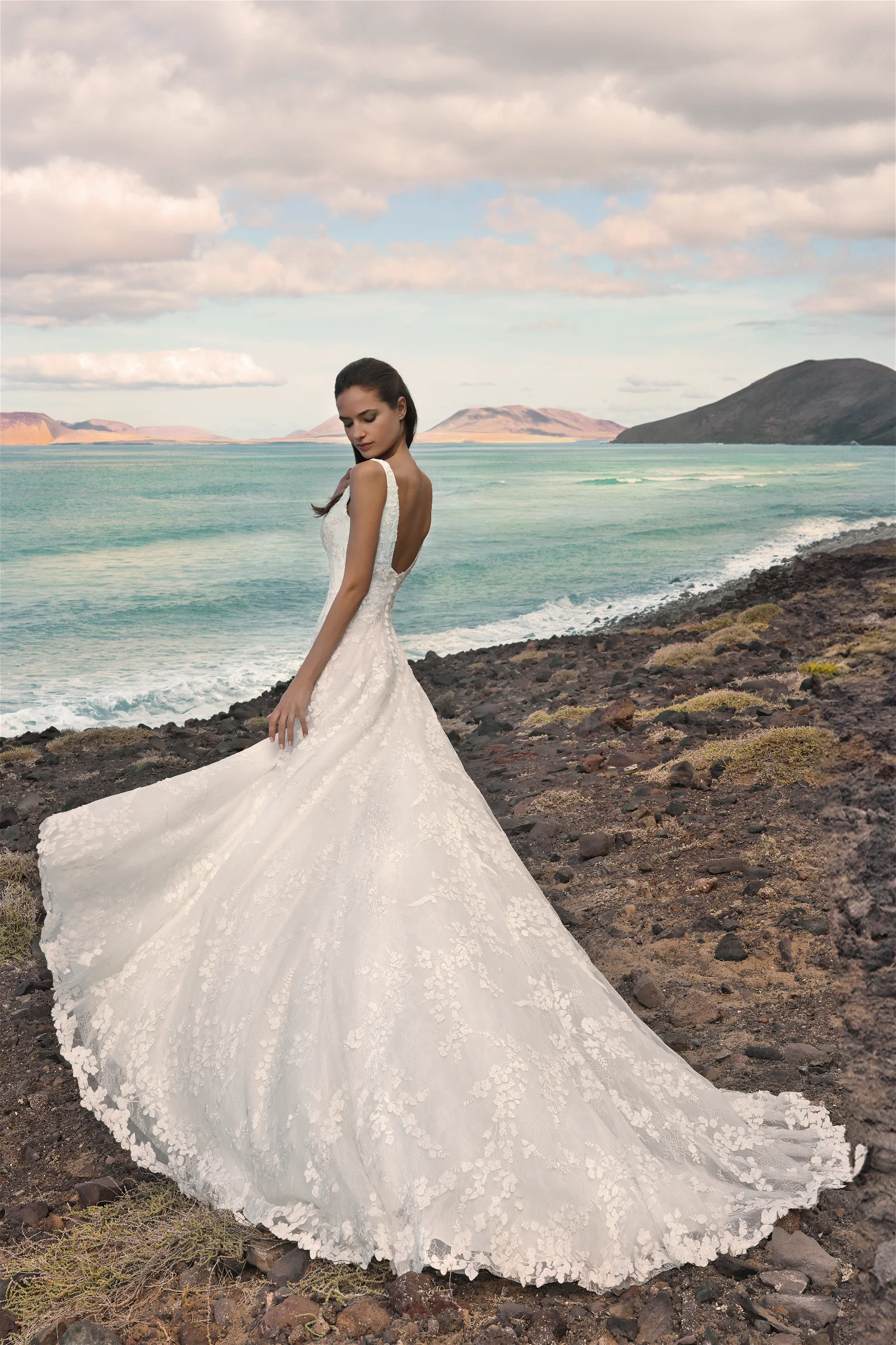 Robe de mariée en tulle, dentelles chantilly et 3D.