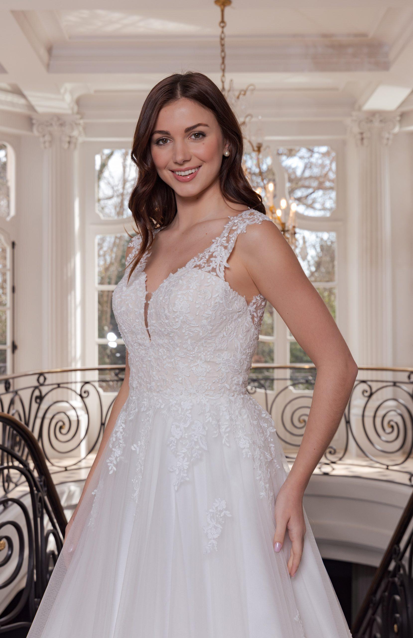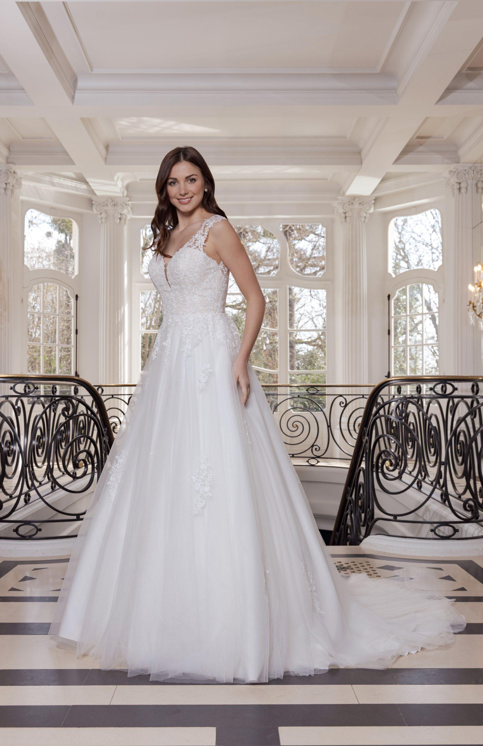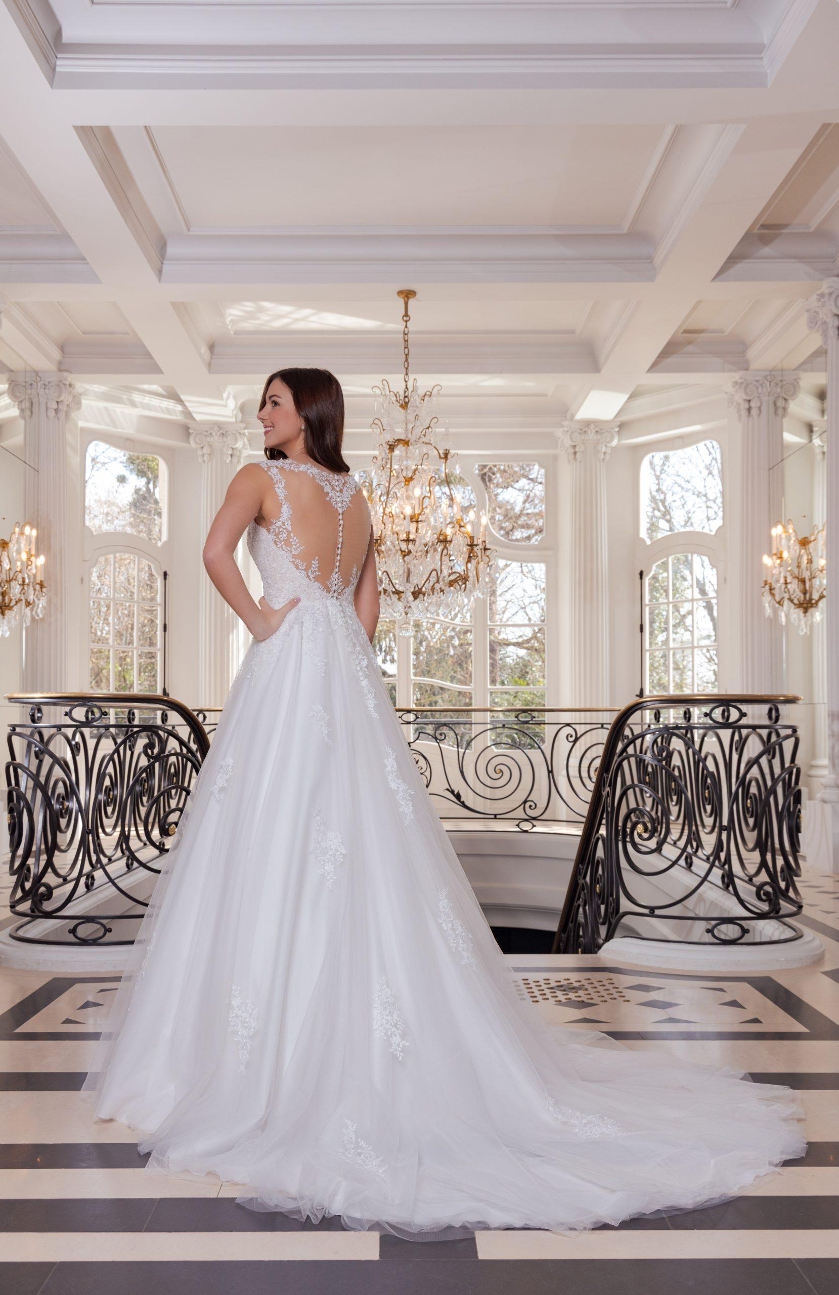 Le dos en transparence, orné d’une rangée de boutons délicats et de broderies raffinées, complète ce modèle d’une féminité exquise.